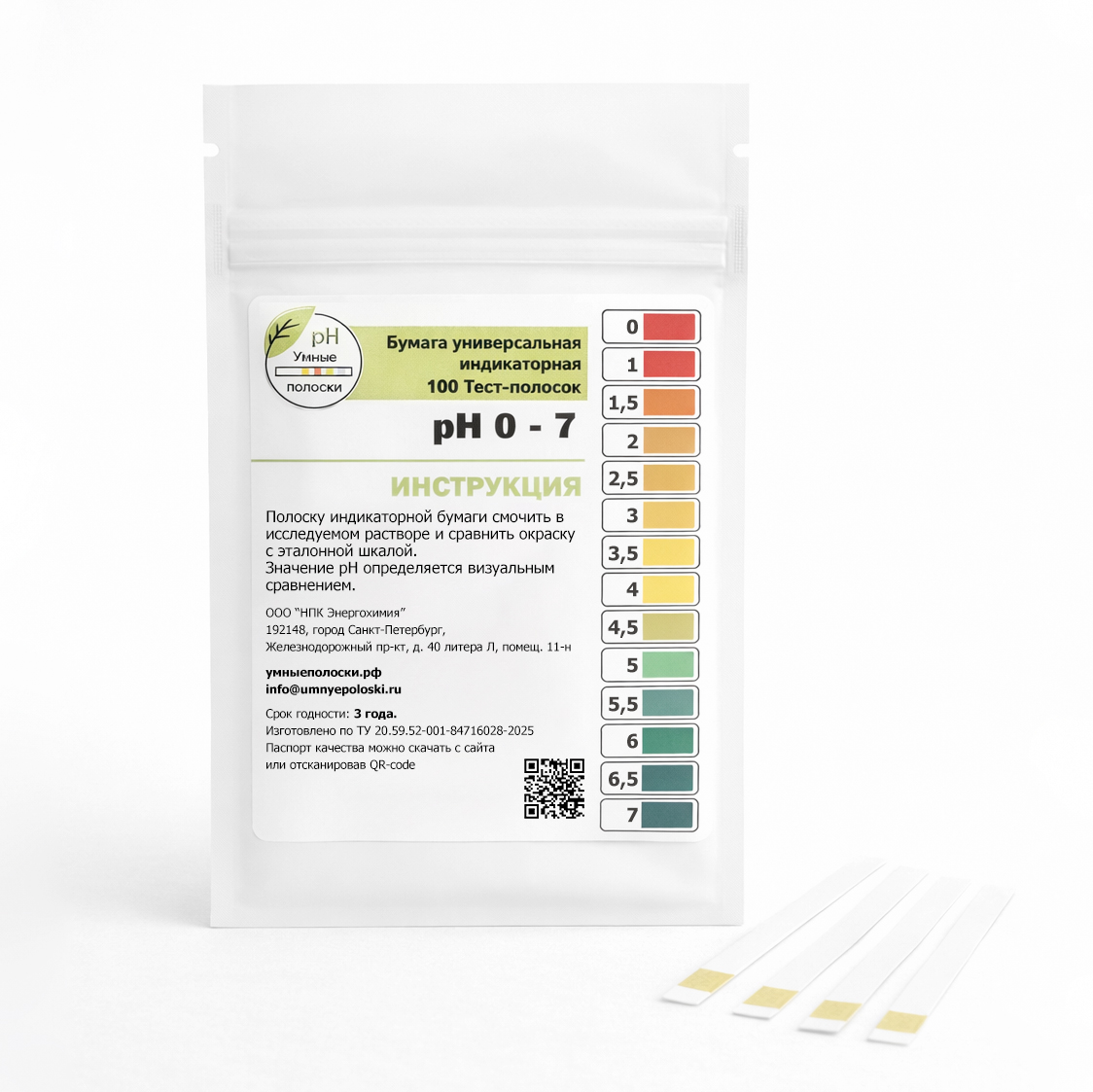 БУМАГА индикаторная 0,0...7,0рН с pH-шкалой, в полосках (100шт/пакет/упак), УМНЫЕ ПОЛОСКИ