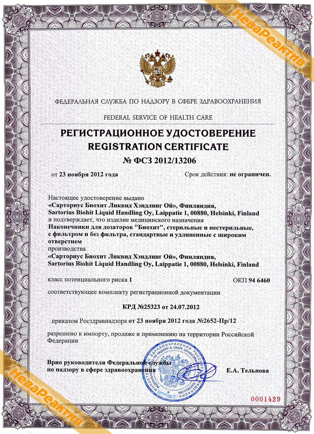 BIOHIT-791200, ФСЗ 2012/13206