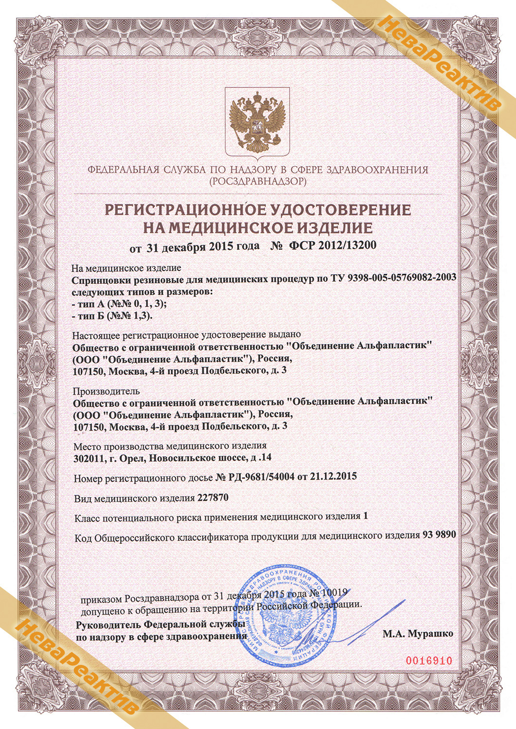ТУ 9398-005-05769082-2003, ФСР 2012/13200