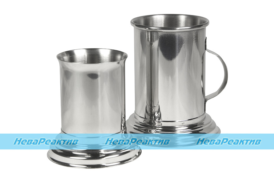 СТАКАН МЕТАЛЛИЧЕСКИЙ без носика 300мл цилиндрический d65/h100мм с основанием и ручкой