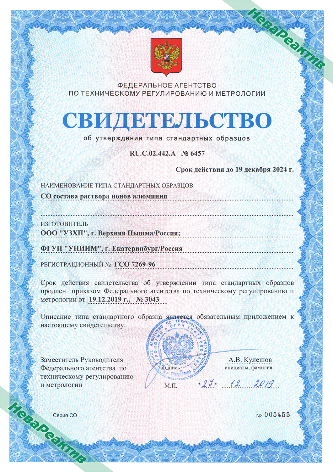 СО ИОНЫ АЛЮМИНИЯ 1(0,95..1,05)мг/мл в кислоте азотной (6мл/ампул)